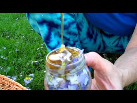 Fill glass jar with fresh violet flowers, slowly pour honey, and let sit for 3-6 weeks. Great for burns, bruises, and sore throat.